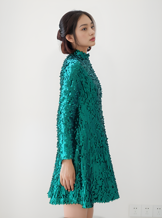 Kiralık Yeşil Payetli Mini Elbise - Işıltılı ve Şık Stil