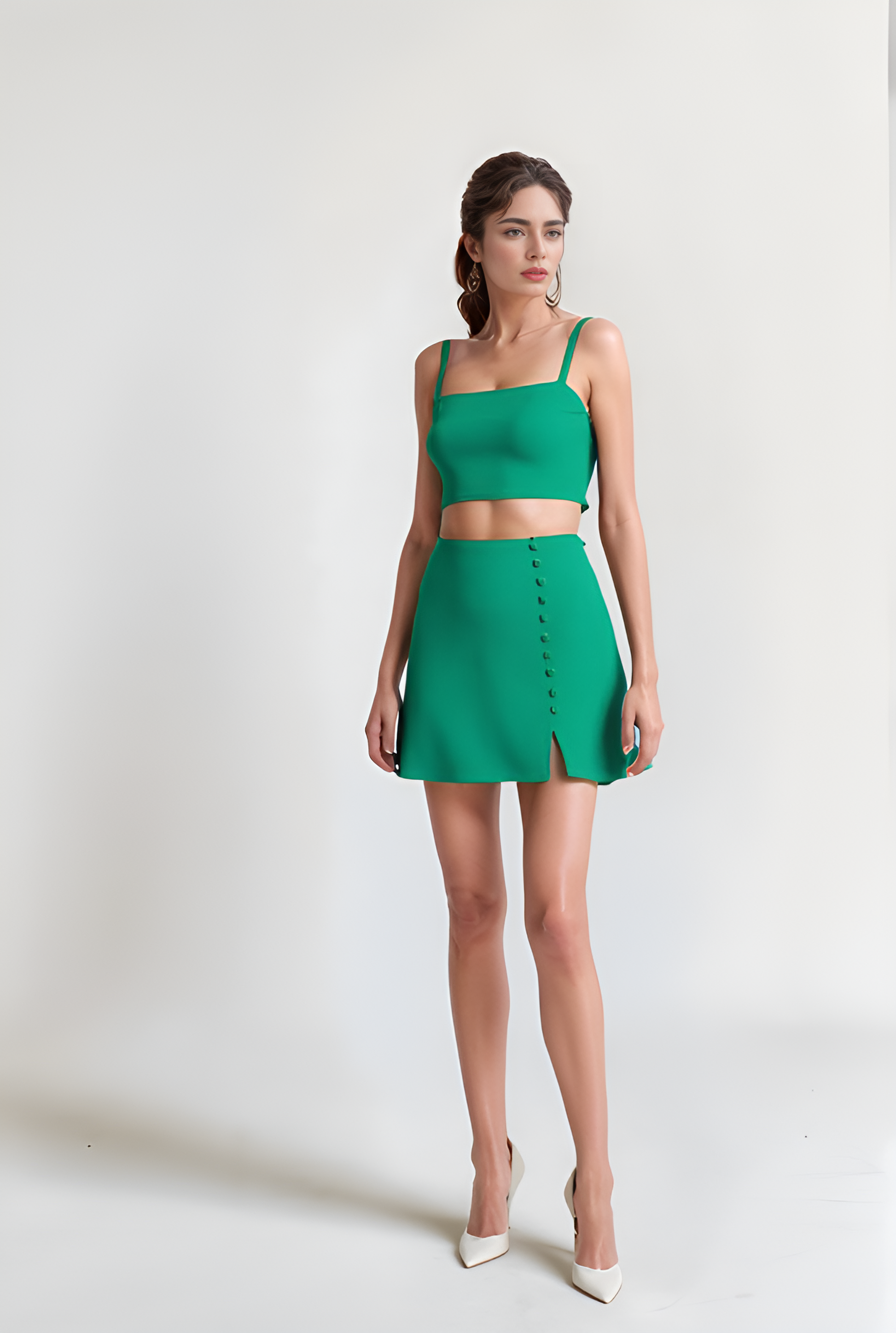 Kiralık Yeşil Düğmeli Mini Etek - Modern ve Şık Stil
