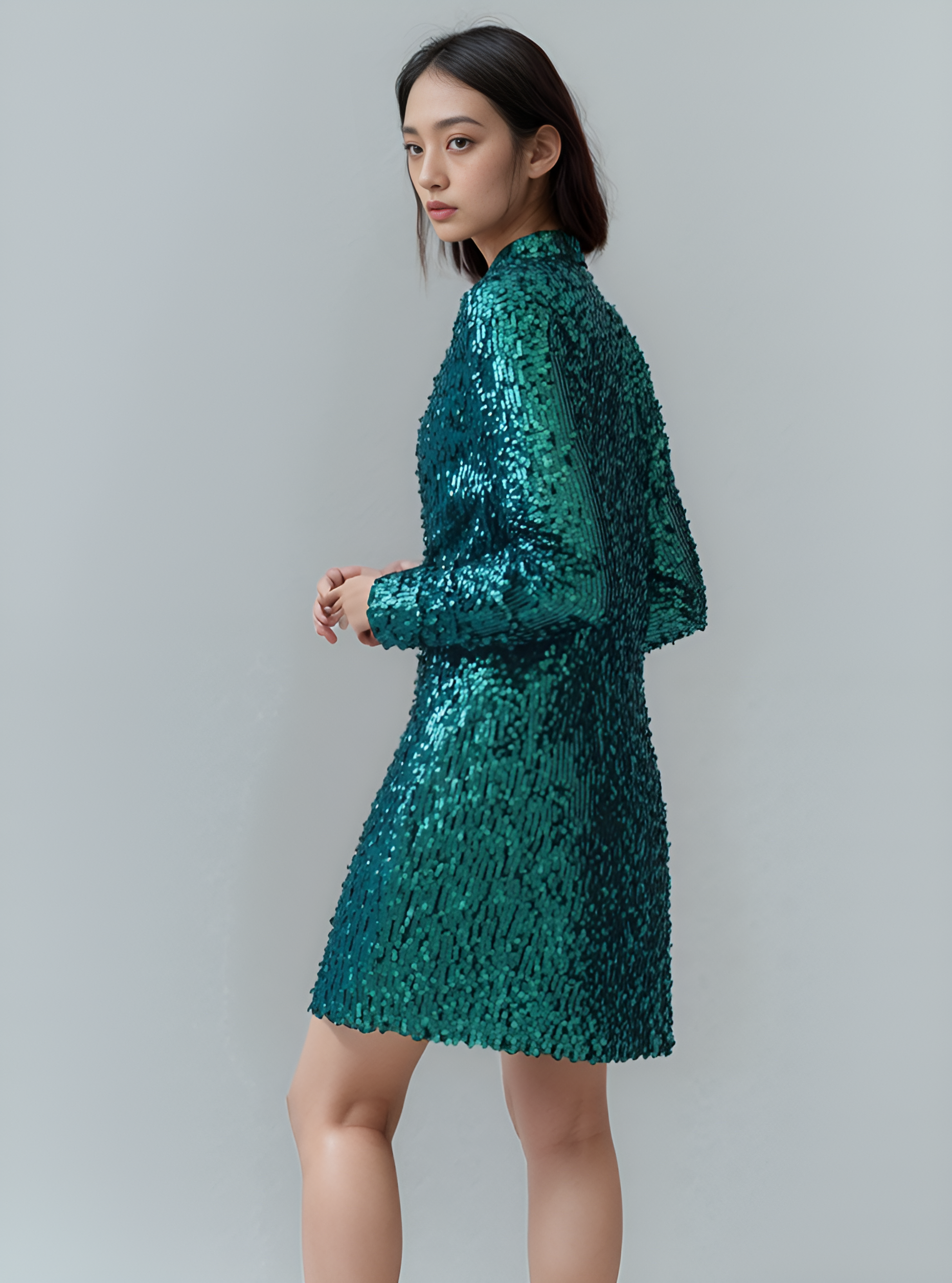 Kiralık Yeşil Payetli Mini Elbise - Işıltılı ve Şık Stil