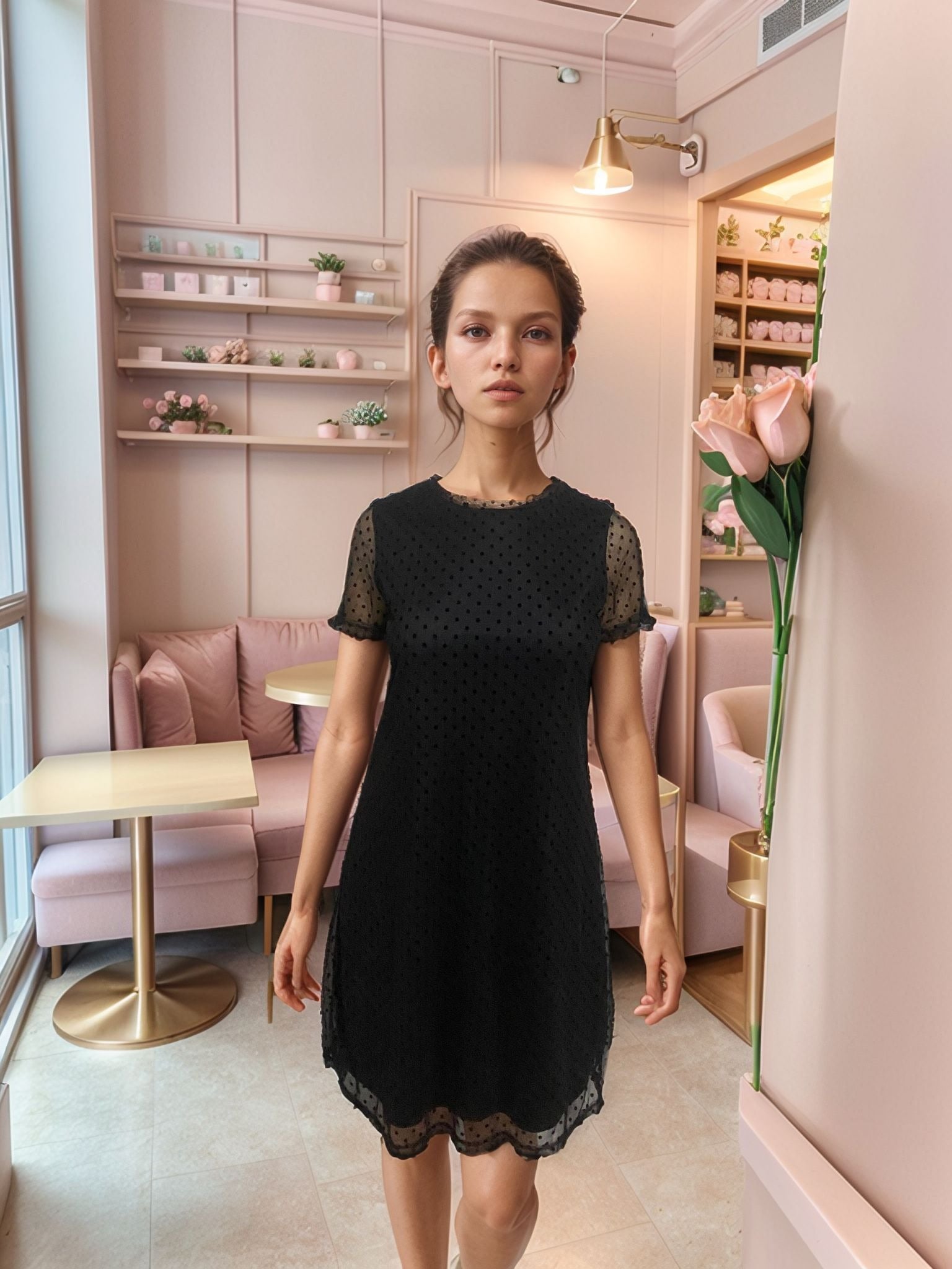 Şık ve zarif bir stil arayanlar için tasarlanan bu siyah kolları tüllü puantiyeli mini elbise, S beden giyenler için mükemmel bir seçenektir. Şeffaf tül kollar ve puantiyeli detaylarıyla feminen bir dokunuş katarak modern bir görünüm sunar. Yuvarlak yaka ve hafif A kesim tasarımıyla hem rahat hem de şık bir seçenek olan bu elbise, özel davetler veya günlük kombinler için idealdir. Yumuşak ve esnek kumaşıyla gün boyu konfor sağlar.